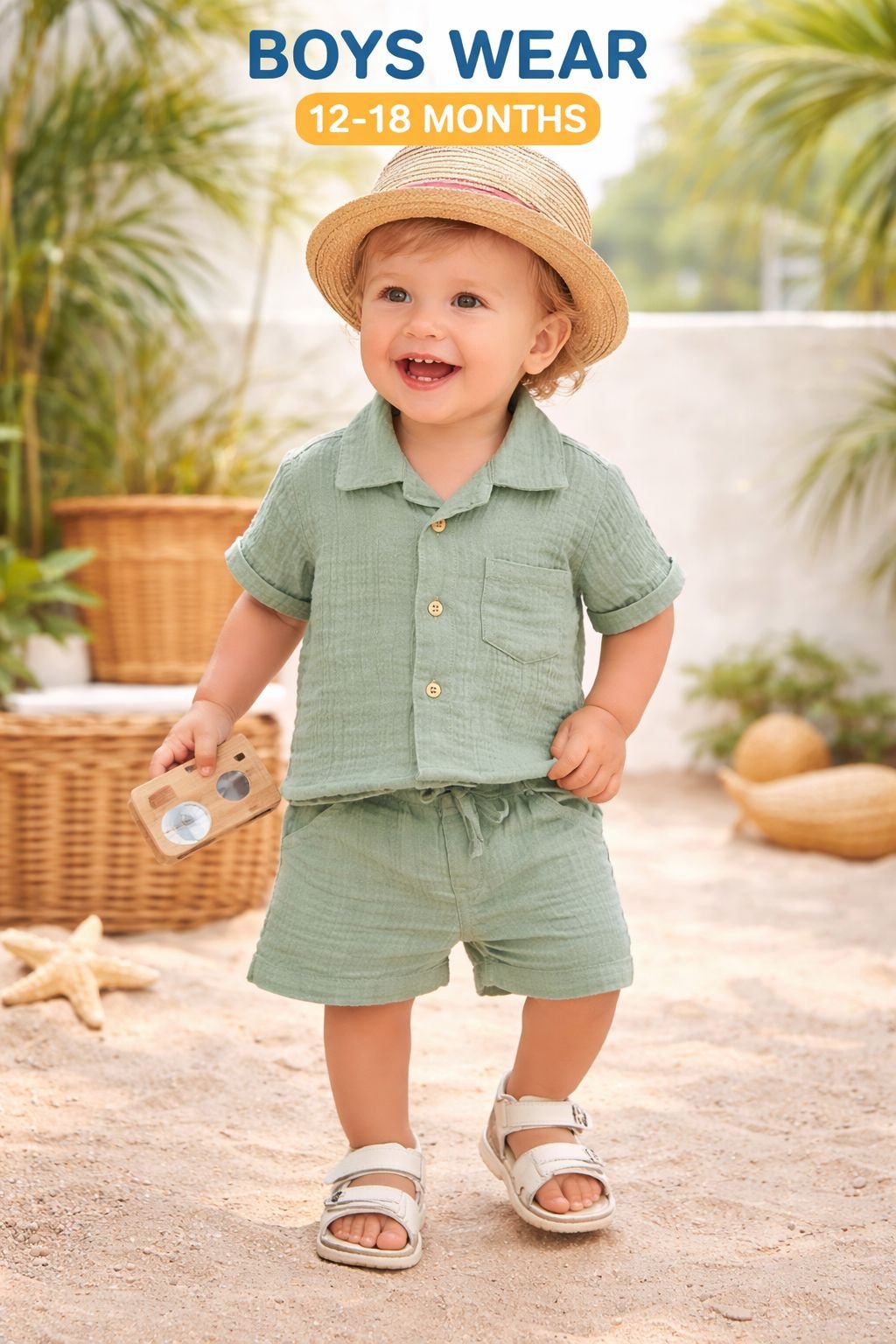 This solid textured shirt is a perfect blend of comfort and minimal style for your child’s wardrobe. Designed with a subtle crinkled texture, it adds a modern and unique touch to a classic look. The collared neckline and front button closure create a neat and polished appearance, while the short sleeves keep it light and breathable for all-day wear. A small chest pocket enhances both style and functionality. Made from soft and lightweight fabric, it ensures ease of movement and maximum comfort. Ideal for casual outings, vacations, or everyday wear, it pairs effortlessly with shorts or trousers.